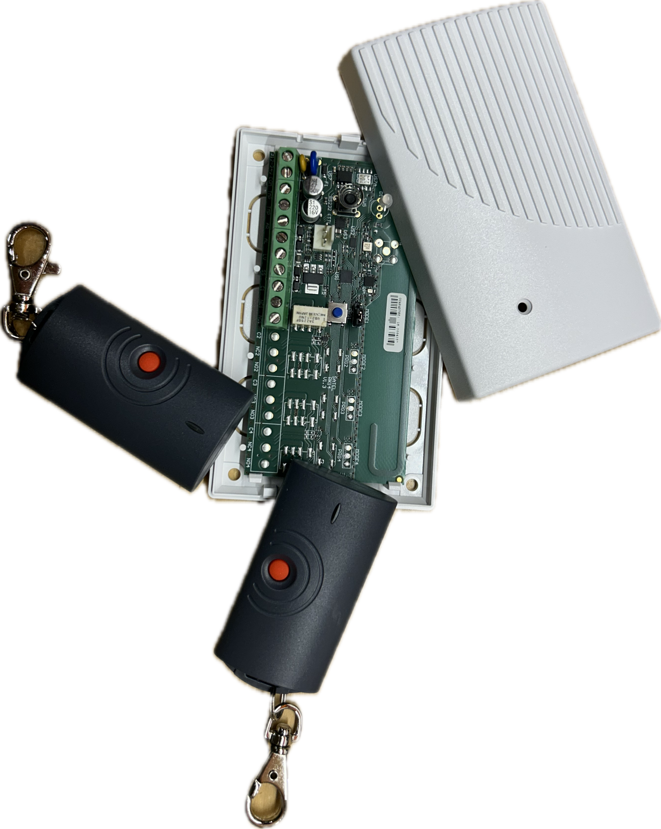 1 kanaals ontvanger RK-1K met 2 handzenders voor gebruik als draadloze paniekknop of vooe draadloos aansluren van magneet sloten Lees meer